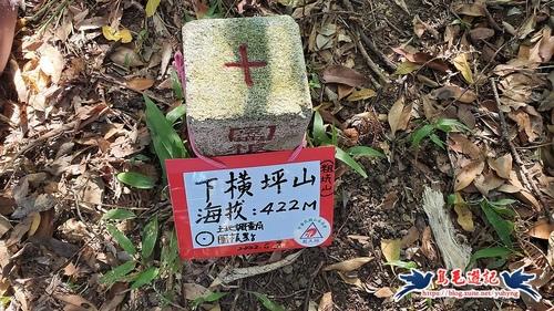 下橫坪山(或稱粗坑山)西南峰(舊稱南峰),有高工局航測點基石No.17,海拔330公尺,位於林間無展望,於此稍歇擦汗喝水,此處有支線下往下橫坪橋頭(北106乙9.4K),指標往下橫坪山約20分,