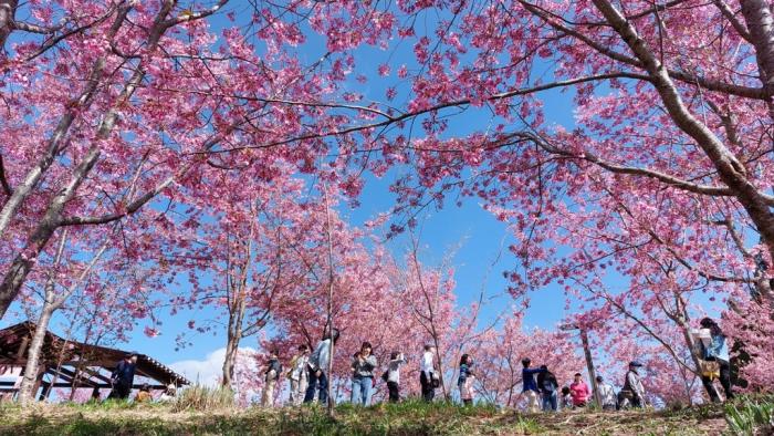 20220305從台北市區出發,歷經四個多小時的車程,終於在11:45左右抵達梨山加油站(服務時間是每日的07:00~18:00)。趕緊下車解放並舒緩一下,車輛也需要加個油,加油站裡種的櫻花很吸睛,仰頭一拍,有藍藍的天幕來襯托當背景,更顯美麗。中餐在梨山街上的簡單打發過後,繼續往福壽山農場前進。