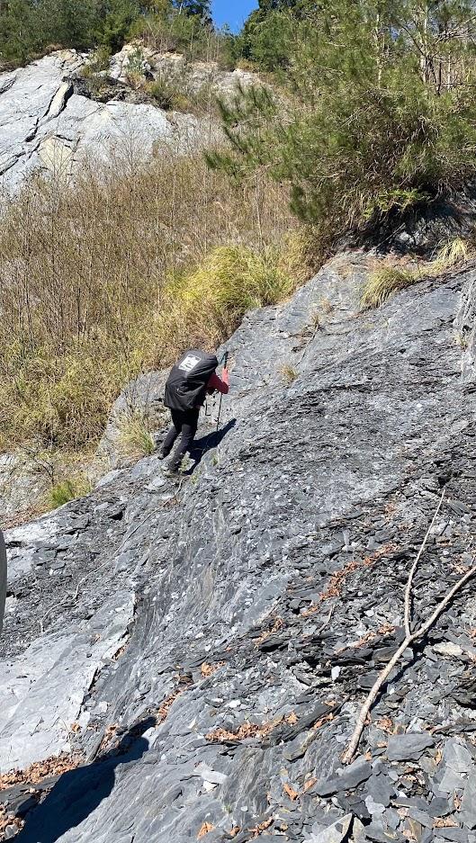 第三天回程,也是最輕鬆的一天,因為下坡較多上坡較少,過溪後,大家都忘記如何過來的,因為是下溯後才過溪,所以要翻過倒木往上,才會看到滿地垃圾的溪谷,上切林道後,這段林道就走得很舒服,只有在快到班山登山口時才有林道崩坍