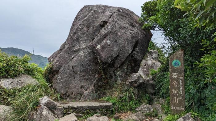菜公坑山頂著名的「反經石」,屬於火成岩中的安山岩,