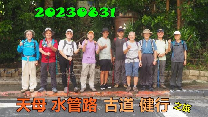 20230831三颱共舞中,且蘇拉強颱襲台,還好蘇拉較往南偏,讓今天的天母水管路步道之旅,仍可成行,感恩吶,一早天母公車站集合,天母站圓環旁,聯絡一下,有人直接到步道口,就出發往天母古道親山步道,水管路登山口,全員到齊,依例來一張出發前合照。