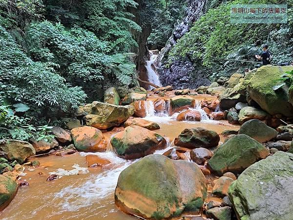翠峰瀑布位於淞溪(磺溪支流),由高、低二座瀑布構成, 高瀑布瀑身細長,平時水量不多,絹絹細流,低瀑布高約5公尺,下方有小瀑潭, 因溪水帶硫磺及鐵礦,所以將溪石染成了金黃色