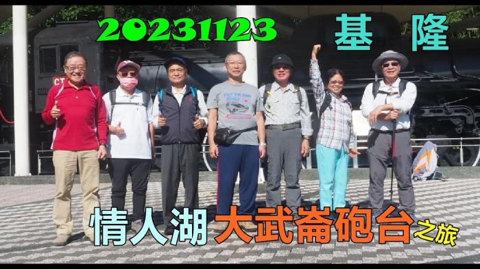 20231123來一趟基隆情人湖大武崙砲台之旅,搭車來到情人湖園區前,依例來一張出發前合照,入口處舊火車頭,還頗搶眼,續往情人湖區,爬不到10分鐘,來到情人湖區了,開始繞行,環湖道路,來到情人湖吊橋,情人湖吊橋大夥來一張合照,續繞湖前行,來到湖邊涼亭稍歇。
