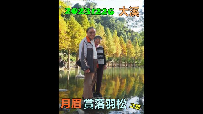 20231226趁好天氣,再來一趟,大溪月眉賞落羽松之旅,來到大溪七張福德公廟。稍歇,遠眺中庄調整池、中庄吊橋,接著賴到中庄吊橋旁停車場,上吊橋旁休憩處,回眺中庄調整池,開始走過中庄吊橋,往月眉濕地。
