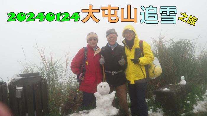 20240124入冬寒流來報到,電視新聞都在追雪,陽明山也下雪了,湊熱鬧,來一趟大屯山追雪之旅,搭車來到北投清天宮,稍整頓一下,請旁山友幫拍一下,北投清天宮前,依例來一張出發前合照,從精舍旁登山口,上二子坪。
