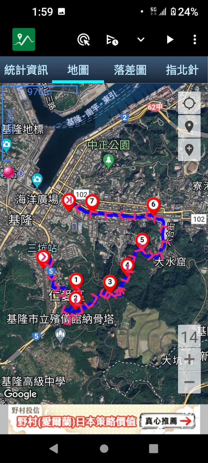 路線:三坑火車站-寶明寺-扶輪塔-竹堡遺址-紅淡山-石象櫻花園(以後不建議新手走土路)-紅淡山北峰-紅淡山北北峰-金交椅南峰-金交椅山-東玄宮-基隆廟口夜市。