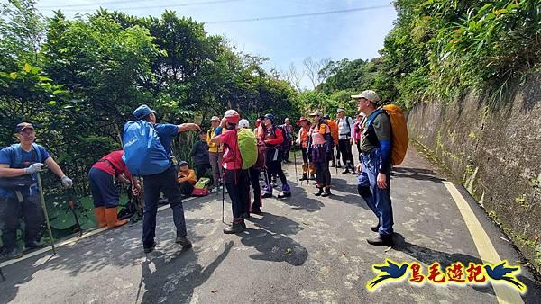 第二處電塔叉路直行陡下坡出產道登山口,此時,遇上藍天隊大軍,其中不乏手持開山刀、柴刀、鋸子...一時讓人深感惶恐。更發覺到今日藍天隊大軍中也有江隊長、阿福夫婦...等人。