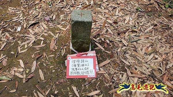 深按頭山又名畚箕湖山,位於汐止、南港和石碇區的交界處,高度422公尺,地上有土地調查局圖根點-久(06)基石。