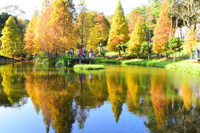 20240106來去長庚養生文化村,今天有陽光的加持,感覺此刻正是落羽松的最佳賞味期。除了養生村原本的住民以外,也吸引了不少外地的遊客,慕名前來欣賞欣賞落羽松美景。
