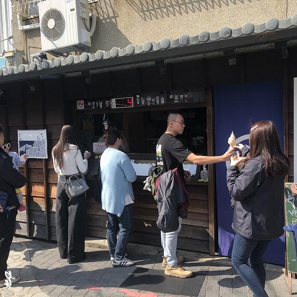 今年年節台南吸引最多觀光客的當屬海安國華商圈,最近只要逢假日就會將機車停在海安路,走進正興街,經過散步甜食-蜷尾家甘味処,泰成水果店,布萊恩紅茶、阿婆魯麵,在西門淺草商場前左轉國華街。上午還好,快到中午就會看到衣著光鮮亮麗的外地觀光客,甚至日韓遊客以及歐美人士從國華街冒出來、蜂湧出來。有些是從友愛街,有些則是從永樂市場逛過來。但如果清冷的天氣,觀光客還沒出現的上午,我就頗能欣賞正興街頭白牆書寫的那句話:「好好散步、好好休息 好好享受生活中一點甜」。