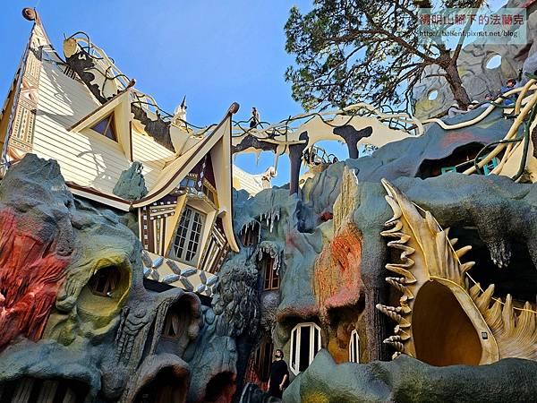 瘋狂屋又叫瘋屋子或怪怪屋,童話屋…等,正式名稱為恆娥別墅,於1990年開業~由前越南總統Truong Chinh的留學俄羅斯女兒Dang Viet Nga建築師設計,有著類似西班牙建築鬼才高迪的風格,並融合了大叻四季宜人的自然環境特徵,瘋外形酷似一棵大樹,通過巨大的樹洞,踩著木樁階梯走進其中,裡面是一間又一間風格迥異的客房,可以選擇在此入住,有各種主題的房間,除了住宿,亦有對外售票開放參觀,成為大叻必訪景點