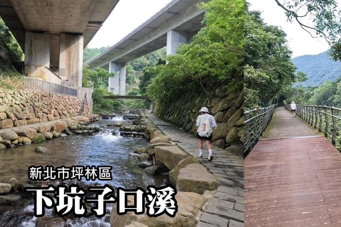 新北市坪林區「下坑子口溪親水遊憩區」, 就位於坪林交流道附近的下坑子口溪, 有免費的停車場及公共廁所, 下車步行30秒, 即可抵達,還有溪岸步道連結附近的北勢溪自行車道,享受,沿途欣賞溪流及茶園風光。