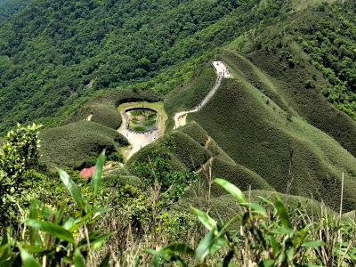 通天橋進入聖母登山步道,步道初期是走在得子口溪岸,沿途有綠樹遮蔽烈日,旁邊又有充沛溪瀑水氣,這一段步道是聖母登山步道中最舒服的路段。聖母登山步道 0.7K 處休息亭,這裡昔日也是簡易的山寮,之後改建成較完整的涼亭,內有羅東聖母醫院提供的急救品,有醫藥箱、擔架和 AED、醫藥盒、氧氣罐等, 由此涼亭開始,登山步道將進入陡升段。陡上奮戰至 1.6K 登臨聖母山莊,今天的視野非常的好,看來準備大飽眼福了,聖母山莊為木造的建物,屋外闢建有廁所,原本是避難山屋用途,也是登小百岳三角崙山的登山口。