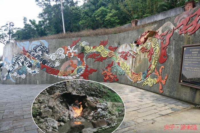 台南白河關子嶺「水火同源」又稱「水火洞」,地處枕頭山麓東南側,地底天然氣順著岩層裂隙溢出,遇火點燃風吹雨淋不熄,岩層凹處泉水汨出積成水池,形成「水中有火,火中有水,水火同源」景觀。有奇景必有傳說,當地流傳與麒麟尿有關的「麒麟傳說」與「火龍水虎爭鬥」二則故事,讓景點更具傳奇色彩。