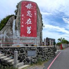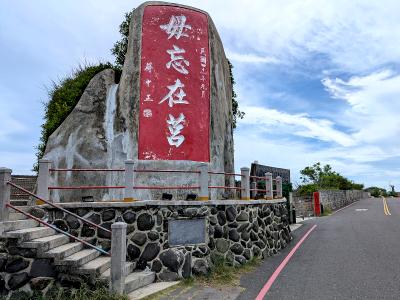 取車離開澎湖觀音亭順介壽路南行,道路兩旁都是軍事基地,為陸軍澎湖防衛指揮部,道路底就是「篤行十村眷村文化園區」,園區道路旁最醒目的就是「毋忘在莒」勒石,這顆碑石應該是復刻版, 實際的毋忘在莒勒石,是在金門的太武山,由蔣介石所題,訓勉勿忘記過去失敗,要奮發圖強光復失土。