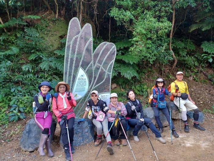 麵隊10人來到山佳爬山,首先爬「牛埔山」,山徑陡峭拉繩向上,努力地往上走,下山後,在「正安宮」前又往上爬,最終接上馬路,往左行,直到「福安宮」旁,踏上鐵梯,往石灰坑山方向走,旋即有條右下山徑,通往很夯的「大湖坑步道」,今天非假日,至少碰見四組人馬來此爬山,沿途碰見沈兄棋文/許兄福來等山界名人。 在「福祐宮」的後面,有座「詹公厝」礦物課基石。 此行最難走的是「石雲橋礦物課基石」,山徑不朋,靠詹兄昭農與GPX,才安全越嶺下接馬路,在馬路旁午餐(茂榮兄有再去修徑,應當好走了)。 感謝沈文如山友告知,這倆顆礦物課基石訊息。 其後步道都好走,經「1號大榕樹」,再爬幾座山後,大部分山友,走鶯歌石步道下山,我和琳達,循稜走鶯歌蛋山,幸福步道到鳳鳴車站。