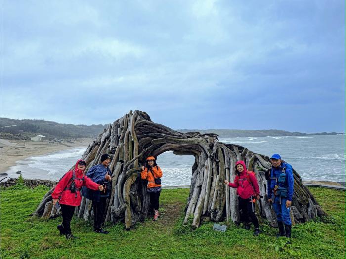 麵隊8人來到三芝走三生步道/麟山鼻/白沙灣/富貴角燈塔,天氣陰雨,不減大家興趣,一路健行,走完全程。 此行輕鬆走,泡茶兩次,一堆零食,大夥圍著一起,開開心心、說說笑笑地,不知不覺地完成此次行程。 #感謝大家的參與並帶很多東西好似過年一樣。 交通訉息: 1搭捷運到淡水站,2號出,往右走,862-863公車,新庄子站下車。 2回程在富貴角燈塔站搭862-863公車回淡水。