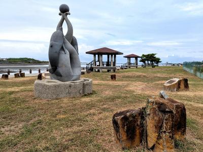騎行北環線203道路南返,由白沙鄉中屯嶼(中墩嶼)經中正橋進入湖西鄉,在澎11號道路的岔路口,看到非常有特色的景觀建物,原本以為是紀念塔之類的,結果是鼎灣社區的地標景物。