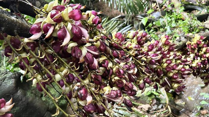麵隊4人小隊,來到樹林賞血藤,雖有小雨,但不減大家的興緻,沿途碰見好多熟.識的山友與遠翠隊,大家有志一同,都為血藤而來,真棒。 此行在由「尖棟山」登山口上,賞了三處血藤,在「祥和山莊」午餐,並品嚐潭哥的優質泡茶,閒聊打屁好一陣子,才依依不捨離開,繼續下午大同山與樹林山。