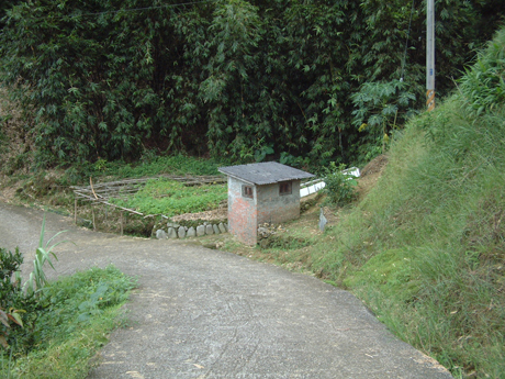 旋不久,第一段斑駁青苔覆蓋的石階古道已走過,銜接出口的是民宅後方的小產道。循產道下行處,便接上串空湖產道的主線,產道主線的大轉彎道路的右側有間小磚屋,前方更有古早的傳統石頭屋及木造的民宅數間,傳統石頭屋的門牌號碼為「石碇串空湖2號」。此一主產道的上下兩處,有數間連結的民宅聚集,便是「串空湖聚落」。 從石頭屋民宅的廣場穿越,綁在大樹下的一隻小黑土狗直對我吠叫著,引來在菜園內拔菜的老婆婆出聲暍叱小黑狗。向老婆婆詢問「土地公廟」的行進方向,老婆婆告訴我再前行的轉彎處,道路的盡頭便是「串空湖福德宮」的所在。 「串空湖福德宮」的前方山林有青翠蓊鬱的環境,在此略歇腳小憩、並檢視膝蓋上的傷口包紮。續從「串空湖福德宮」左側方的「洗手間」方向走去,繼續探索「串空湖古道」漸已流逝的驚喜時光,也是我與第二段美麗、古老石階道再度邂逅的開始。 只可惜第二段古老石階道的兩側林間潮濕,便有為數眾多的小黑蚊如影隨形、神出鬼沒的滋擾著,更甚者還叮上我裸露在長袖外的皮膚,致令旅人無法盡情的停下腳步,隨意的坐臥步道或林間。「串空湖古道」上從福德宮過後的第二段古老石階道,因人煙足跡不多,石階道又被周邊的林木掩蓋著,因此石階上的青苔更顯鮮翠,行走其間除要防範黑蚊的親吻外,更要小心足下的踏走步履 。 |