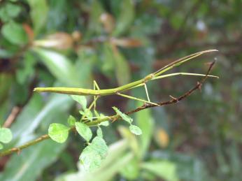 的入口處,遇見一隻頎長身影的綠色竹節蟲,拍照後再度走入迷