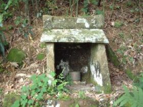 此時,一陣驟雨傾降,荒蕪的名人祖居前新建有一美麗的涼亭可避雨。雨中的遠山,迷朦中有份空靈的感覺、、。離開古色古香的「靜時亭」後,產業道路的大轉彎處、民宅旁的右側有陡上的花崗石階梯,是可接上蜿蜒山中的產業道路的便道;再往左向、依著「大豐幹40」的電線桿一直往前行,則可接上「更寮古道」的另一個入口。 於此遇見一小隊登山人馬,問清楚路線後,我再度踏上也是新舖設花崗岩石階梯的「更寮古道」。一路陡坡上行約是40分鐘的時間,山中的木板指標清楚的標示著「土庫岳」(或稱望高寮)山頂已近。不知是否為心理作用,或是真實情況的表現,從一路行走「栳寮、更寮古道」的新舖設花崗石階梯後,恐是缺乏一種踏踩泥土徑的柔軟感覺,我左膝蓋又間歇性的疼痛加劇著! |