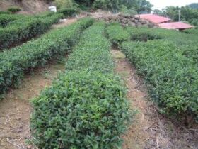 看到路旁右側古樸的土地公廟時,「栳寮古道」就算是走完了,再前行有一間尚有人居住的土埆厝,是為「林有財觀光茶園」的主人的居屋。步上產業道路右轉可抵達紅磚平房的「大坑栳寮製茶所遺址」;退回產業道路、沿著雅緻、有序的茶園右轉的民宅旁,另有一棟已荒廢、破損不堪的「包種茶創辦人魏靜時的故居」。如果我不是事先已得知資訊,我亦會如同Tony先生一樣,無法將南港包種茶獨特創造者的響亮名聲,與如此荒蕪的名人祖宅故居聯想在一塊兒?! |