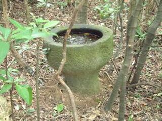 今日既有此一新發現,一行人便往小徑進入。行前未久,小徑右側有一古樸的石臼出現,真是振奮人心!不久,竹叢林、古早的蹲式茅坑,以及旁邊石砌的洗手台完整的出現,此處應就是林宗聖老師所指的「蚊子坑古聚落」。