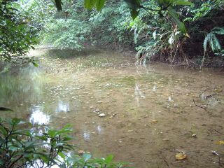 離開「蚊子坑古聚落」約是15分鐘的時間,於緩上行的山林間,皇天總算不負苦心人,我們終於尋找到傳說中的「和美池」。「和美池」雖然沒有陽明山上的「七星池」有著迷濛美麗的雅號;也沒有「面天池」十年難得一見滿水位的響亮名聲,但卻是眾梁山弟兄們齊心披荊斬棘、歷經多次討論尋獲的欣喜心情,於彼此的攀登行旅經驗上,其代表的意義特殊非凡!!於拍照後我們選擇附近的空地,休息用午餐。