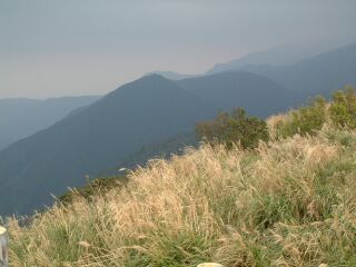 再經過另一段的陡坡行走後,一行人再次抵達另一處的平緩鞍部叉路口,此時,「山水雲」前輩的登山標示牌,確是明白的寫著我們剛剛攀升上來的道路,的確是「山子頂古道」。於此休息處,同行的兩人暫與我們分道揚鑣,先行前去「二子坪」的凱達格蘭一號遺址旁的溪流處,等待與我們會合的午餐約會;而其餘的夥伴們則再次攀上陡坡,前往「向天山」行去。 約是20分鐘的陡坡上行後不久,一行人便穿出位於陽明山國家公園「東西大縱走」的活動中,「動」字拓印牌前方不遠處的芒草區。悠閒的站立於芒草原的山峰頂,與好友們笑看秋日「芒花翻白浪」的陽明山十大奇景,心情的開朗是可想而知的喜悅。 |
