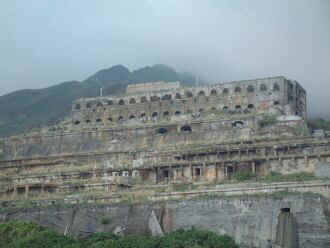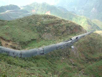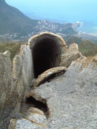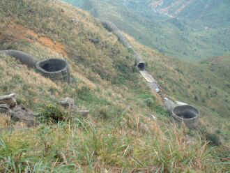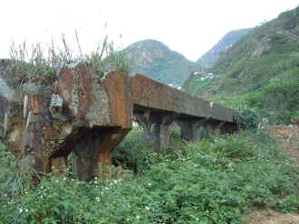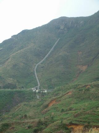 位於陰陽海上方,傍山面海的「十三層遺址」,依著山勢層層架構的奇特建築形式,林老師膩稱它為「西藏的布達拉宮」。沿著山麓興建的建築,尚包括有儲存槽、轉運站、煉金場、運輸纜車,以及在陡峭的山坡上,有號稱全世界最長的通風管及廢排煙道等設施。我抬頭仰望山坡,廢排煙道像是一條巨蟒盤據著、、。