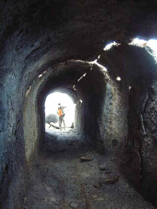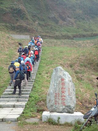 而綿延不絕、陡起又陡落的山巔上,雖擁有四面八方美好景觀盡收眼底的地利之便,但在背風面的緩形山坡上,各種漫性牽連的綠色植被底層下,卻也滿佈有方位不一的坑道散落著,甚且有的坑道的直徑深度,高達近30公尺的垂直深度。林老師一再的叮嚀、提醒,有如此潛伏的恐怖坑洞存在,一般人更應切記,千萬莫隨性前來攀登。此種叮嚀聲一再迴旋在我的前進步履上,是一種顫慄感的警示訊號提醒著我自己,勿輕忽山林存在的危險性!