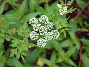 花名:水芹菜 繖形花科、別名:細本山芹菜,分佈在全島平地至山區,多年生,花期:4-12月,葉2-3回羽狀複葉,互生,小葉披針形至卵形,邊緣有鋸齒,葉柄長2-10公分,基部鞘狀、花序複繖形,小花白色,花瓣5片,雄蕊5