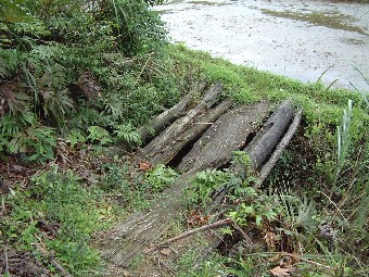 | 辭職嶺古道口的土地公廟 | 四分子古道上的豬圈 |