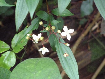 花名:布勒德藤 野牡丹科的小灌木,生長在中低海拔闊葉林下或潮濕山壁。其莖有粗毛,為直立或攀緣性,帶有紫色莖、略呈圓柱狀 布勒德藤外形與小金石榴非常相似,不過兩者最易分別的特徵是其葉片表面及背面皆覆有稀疏白刺,而小金石榴則無;布勒德藤的花藥為深粉紅色,而小金石榴的花藥則為淡粉紅色;同時兩者分佈區域是:小金石榴以南部和東南部較多見的,布勒德藤則沒有明顯的差別。