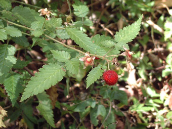 雖說我們三人在入口的車道上,因為有我小小「浪漫心」的延遲遺憾所致,便無法像「蕭郎」領軍的四人行,擁有更多深入古道的前進時間。但,以我們三人「殿後」的輕步緩行,途中遇見一整片毫無遮掩的「台灣紅榨槭」的美麗;以及採摘許多「 虎婆刺」的紅透果實來品嚐。這許多意外豐收的喜悅,均非是趕路的旅人所能享受到的樂趣,於我僅是單純想行走古道的初衷,我,心滿意足了!