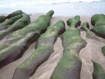 潔白沙灘配鮮綠「石槽」 |