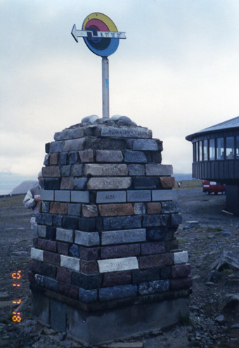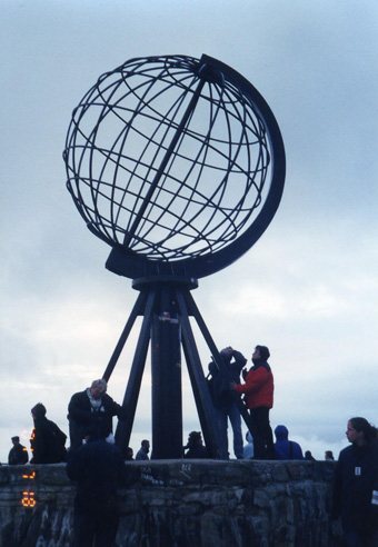 說起歐洲最北端、已進入北極圈的「北角」地區,就會讓人有一種已是走到天涯海角、世界之顛的感慨心情。在進入歐洲北極圈6至8月的夏季,是屬於「永晝」的季節;太陽在午夜時分,仍會微微的透露出明亮的光影,高掛在遠方的山頭上。當我在下榻的旅館於夜半醒來,第一次瞥見窗外遠方的山頭稜線,還是清晰可辨的時候,我不禁仔細的端詳我手上的腕錶,並且興奮的拉開窗簾,好好的瞧瞧這難得一見的「午夜陽光」。 當年,我從英國搭上歐洲的內陸航空,先抵達挪威的首都-「奧斯陸」(OSLO)、隔天再轉搭到Tromoso(一處離「北角」下方的城市─Horringsvaag最接近的航空站),之後再轉搭巴士進到Horringsvaag小鎮。夏季的Horringsvaag小鎮每天晚上十點左右,僅有的一班公共汽車會從此處出發,顛簸一個小時的彎曲路程,即可抵達天涯海角的「北角」地區,該班公車並在午夜的三點鐘左右再開回Horringsvaag小鎮。 以站在「世界之角」的幃度,冀以最近的距離看「極光」、「午夜太陽」或是俯瞰北極海浩瀚的各國人潮,有如朝聖者般的湧入夏季恆溫是零度的「北角」地區,其盛況可想而知。再加上時有雲霧掩映陽光所產生光暈變化的瑰麗奇景,更是博得人潮一陣陣的驚呼聲,或是鎂光燈此起彼落的閃爍著!! |