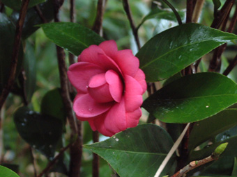 石門鄉「茶山步道」的認識,我也是經由「蕭郎」的旅記得知的。此步道位於石門鄉與金山鄉的交界處,整條步道全長約有1公里,是利用原有的農用道路改建而成的。沿途的緩坡上,鋪設有平整的石階板塊,加上有滿山遍野的悅目綠意,是非常適合作雨中閒走的好所在。 「茶山步道」的周邊栽種有起伏的茶樹園,沿途的地板上鑲嵌有關於茶花品系的介紹,一一尋板讀起,竟有一種遇見老友般的親切感油然而生。走訪入「茶山步道」的中途,才約是下午三點左右的時光,可是因為是下雨及低溫的關係,整個「茶山步道」的光影,有如黃昏般的灰暗景致。雨中獨自閒走的旅人,便也意興闌珊的往回程的路途踅去。。 今天北海岸雨中車行的漫遊終點,結束在「舊金山總督溫泉」暖呼呼的溫泉水中。肇建於日據時代、昭和13年(西元1938年)的「舊金山總督溫泉」,是當年日本總督府的溫泉招待所。如今還尚存在一樓售票亭窗口的檜木板,仍是當年規模的舊時物。