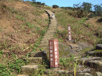 | 跨過7-1號屋後的小溪流之後,我還是轉換心意,尋著農作區的柚子園路徑,來到與「炮子崙7-1號」隔鄰的豪宅門前。該豪宅的屋側對面的山坡旁,見有一鋪設華麗的「萬善堂」豎立在產業道路旁。再走往寬闊產業道路的盡頭處,右側的下坡處可接續上來時的青苔石階路,便一路回返到「炮子崙6-1號」的門前。 當行走至「炮子崙6-1號」屋側旁,遇見從6-1號門中出來的一位老伯,便向他詢問我剛才所走的路徑究是為何?原來,此一青苔石階路直往山林間走去,也是可通往「王軍寮」的舊時路,是當年住在「王軍寮」與「炮子崙」兩地區的山間住戶,彼此相互來往的農路與聯絡道。後來,因為產業道路的闢建,濕滑的青苔石階路及山間小路,便鮮少有人行走了! 在深坑「茶山步道」不同高度的兩處,都發現有可從「炮子崙」地區相通走往「王軍寮」的幽情小徑。倘以先前我首先發表旅記、被山友膩稱為:「JenniferRoad」,與今日再度發現的這一條青苔石階道相較,以我喜尋幽訪勝的心情而言,今日青苔石階道的意外探訪,毋寧有更多發思古幽情的喜愛心湧現、、。 行旅日期:2006/01/14 |