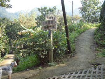 | 從橋旁的土地公廟往寬大的產業道路直往上走,約五分鐘即抵達「萬家香土雞城」及其停車場,在此道路的右側,深坑鄉公所立有「炮子崙登山步道」的佈告板一座。循此佈告板後方上山的道路,便為「炮子崙步道」。 「炮子崙步道」(走到中途,深坑鄉公所又命名為「深坑步道」)全長不過1公里而已,但卻不失可作為郊野行走的悠閒路線。在亮眼陽光穿透、鋪陳的山林間,對於平時有點膽小的Ery,卻是十足放開懷的雀躍行程;倒是累壞了回家後的我,還需要忙著幫牠洗澡,並一一挑除牠身上所沾粘的眾多草籽。 一人一狗快樂的緩行至「深坑與木柵交界」的山中古厝附近,遇見在菜園中忙碌農事的老伯,開口向他問好後,倆人閒聊幾句「炮子崙步道」的古早使用意義及周邊環境、地域分野的話題。已屆八十高齡的老伯,身體仍是硬朗與健康,未有歲月的痕跡在其身上停駐的印象。聽著我這樣的讚譽,老伯樂的合不攏嘴的回說:他每天忙碌著菜園的工作,就忘記要老化的事情了、、。 |