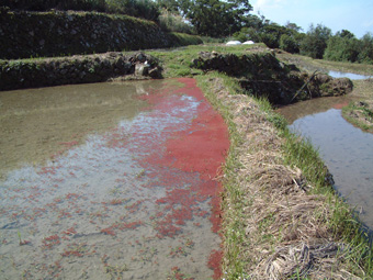 以在都會區的邊緣地帶,要尋著一畝完整、翠綠的水田耕作地,說實在是件蠻不容易的事情,我便是如此衷心的喜愛著,這一畝混有泥土香及寬闊視野的水稻梯田。因此,每當有機會前來行走「茶山古道」,我總是有如回家般的情感,一定要踅到這一畝水稻田的阡陌上,走走、看看或是躺在田埂上,讓嗅覺在吸氣與屏息間,緊緊與泥土香融合、聯繫在一起。 此時節的水田中,尚未有農作植栽的播種,整塊水田倒是蓄滿了盈盈的水量。平坦寬闊的泥濘水田中,便成了初春「小蝌蚪」家族舒展筋骨、活動身軀的悠遊天地;也是「滿江紅」等水生植物,恣意成長的最佳表演場所。 在清澈水圳旁的草地裡,「通泉草」恣意盛開著藍紫色的小花,讓人很難漠視她們「數大美」族群的存在。在視野開闊的綠意田園中,充滿著花草香的阡陌,再兼有浩瀚碧穹藍天的對比,想親近自然的渴望心,不禁趨使著內心裡早已想躺臥在田埂上的旅人,悠閒的翹起我的「二郎腿」,以仰視的角度,看著似是蒼狗的白雲與風姑娘,在碧穹間玩著往復的嬉逐遊戲、、。 |