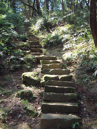 一片屬於春天嫩綠色彩的菜園、幾戶農家坐落其間的悠然,就這樣矗立於「茶山古道」的沿途。一夥兒老友們沿途哼哼唉唉的,約是行走一小時有餘的時間,總算來到「林家草厝」的屋前。當飽覽農家田園的完整風貌過後,老友當中竟有人起鬨鬧說,回程想去行走山友們膩稱,由我率先發表遊記的「珍妮佛路」(JenniferRoad)。 呵呵!以我那一群老友們的「肉腳」功力,連「茶山古道」如此寬平的泥土路及整齊的石階道,都能沿途走到「哀聲怨道」的。倘我是不識她們脾性者,或是心存容易自滿的心態,敢膽就附和她們的倡議,隨性帶她們前去行走「珍妮佛路」,可想而知日後我的耳根子,絕對難享有清靜的好日子!!呵呵 |