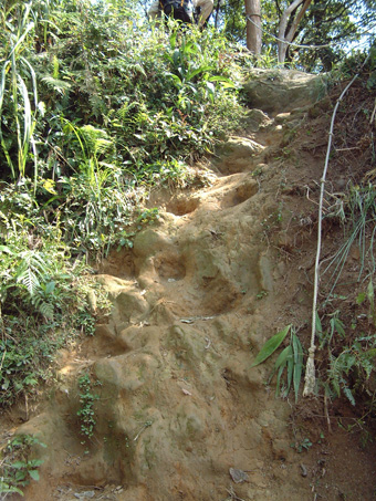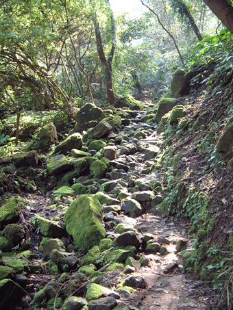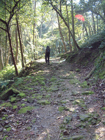 但我不解,想倘徉、漫步在清幽的林間步道上,是要傾聽蟲鳴鳥語的天籟;是要感受林葉婆娑搖曳生姿的模樣。可是,雖身在清幽的林間,聽覺卻被吵雜、五音不全的歌聲灌滿,想尋幽的心情何以為繼呢? 且彼兩者間,是兩種完全無法相融的情境,竟也能長久同存在如此的山林間。問了「蕭郎」是否敢在如此無封閉兼是陌生人的面前,放聲高歌呢?我與「蕭郎」顯是被如此的「天籟」駭住了,早早快步走離去。 離開「小粗坑古道」的後續行程,倆人又另行走「清水坑古道」。但因有「卡拉不OK」的噪音破壞了心情,今日古道的精華處,僅止於「小粗坑古道」 的美好回憶。其餘的旅記,便乏善可陳了。 行旅日期:2006/03/05 |