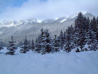 洛磯山脈國家公園的大自然景觀,是原始中的觸手可及。高聳入雲的綿延山峰、筆直陡峭的岩壁,令人彷彿置身於一幅氣勢磅礡的風景畫中,此刻的季節,遠山、近景皆在一片銀色的世界中,令人視野舒坦中漸起心曠神怡的感受。 | |