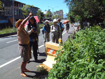 現在的人恐怕已經不知道「紅心拔仔」是何滋味了,因為她早已被高經濟價值的高接梨甚至檳榔樹所取代了。但是,至今我仍喜歡啃咬青脆的「蕃石榴」。我想,是在啃咬「蕃石榴」的過程中,隱隱然牽引出許多對宜蘭溫馨、濃厚的微妙情愫吧! 探訪「金面山古道」的途中,我們一夥人在北宜公路某處大轉彎的草坪上,或散坐或獨坐在翠綠的草坪上,俯視著蘭陽平原的旖旎田園風光。潔淨如洗的清澈藍天下,陽光偶爾會從雲隙間隱入或是再從雲端跑出來伸伸懶腰,天光雲影交織成瑰麗的蘭陽平原,令人有一種止在眼底的悸動情湧現。 摻雜著微風與鳥鳴聲的草原斜坡上,我心靈深處中時光凝結的微吟回憶,如額頭的汗滴點點沁滲出來,只覺馨香與深刻的鄉愁逐漸湧現、、。但在短暫的停留時刻裡,總有後繼再尋古道幽徑的行程而不得不離去時,不捨離去的心情竟如「銩銩銅」的聲音,穿梭、廻盪在旅人的心中許久許久、、。 行旅日期:2006/07/29 |