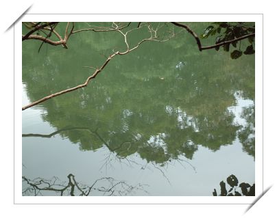 既是汛塘古道,在行進的過程中,我們便發現在古道的沿途,左右錯落有七八處的農用灌溉水塘。水塘雖沒有湖泊的廣袤浩瀚,也沒有溪流的清靈躍動,但,當靜定澄澈的水面,隨著日升月落、晨昏光影流動的變化,整體顯現的空間印象,不論是水波不興或是波光瀲影的風情,總讓我想起「印象派」特有的燦爛,以及稍顯得散亂的迷人效果。