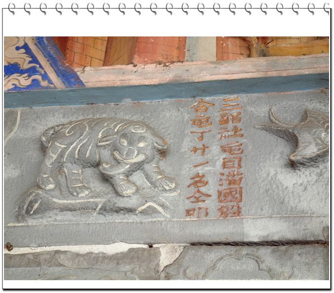 「三貂社屯目合屯丁」等廟柱文字 |