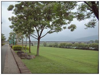 坐在「宜蘭社福大樓」一樓的臨窗邊,享受豐盛午后餐飲的同時,兼可遠眺前方「細葉欖仁」隨風揮舞優雅的細緻姿態,便覺今日宜蘭的踏青行程實不虛行。餐後,向「社福大樓」餐廳的服務人員,詢問有關「西鄉廳憲德政碑」的正確位置過後,我從「社福大樓」餐廳的左側方,爬上二樓後穿越懸空架設在河濱道路上的「空橋屋」,再直接延伸走往車流量大的「中山橋」堤防方向行去。