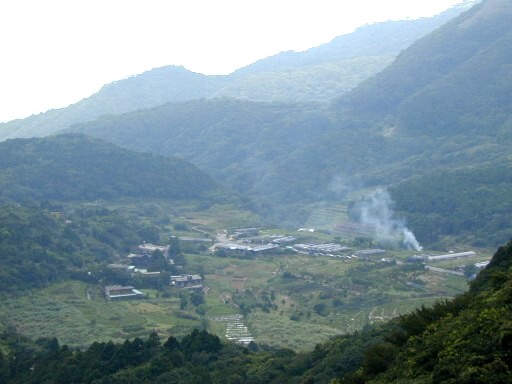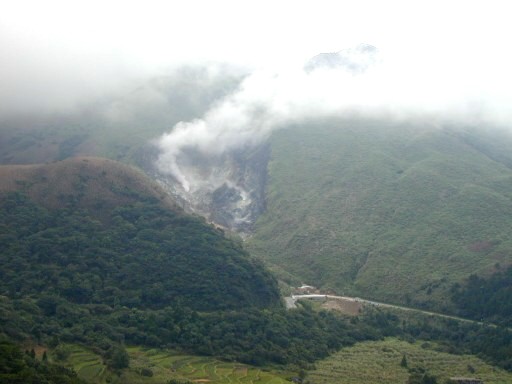 大屯山南峰山頂。南峰頂看西峰。鳥瞰北投地區。 |